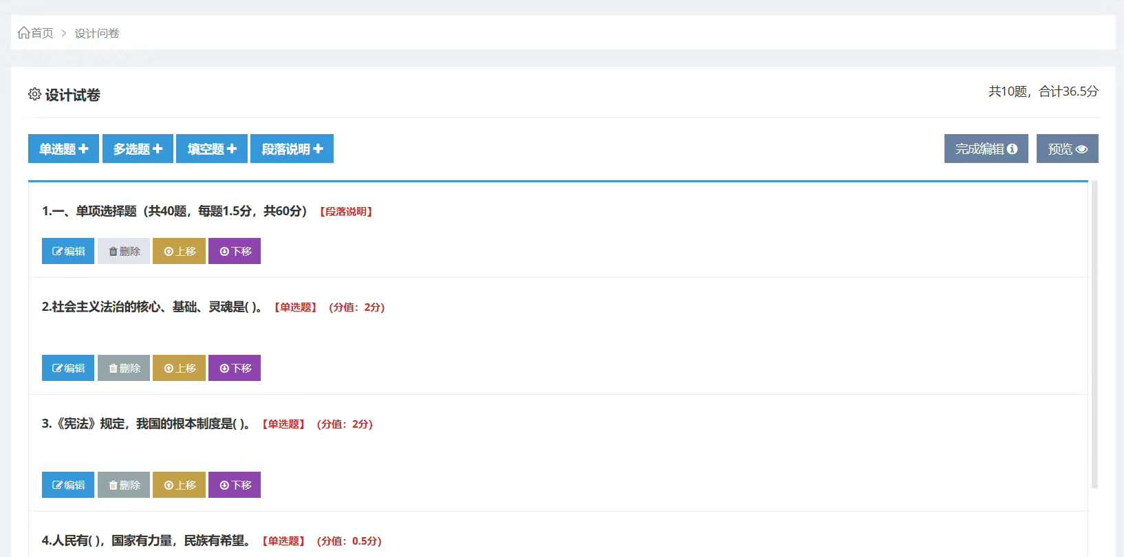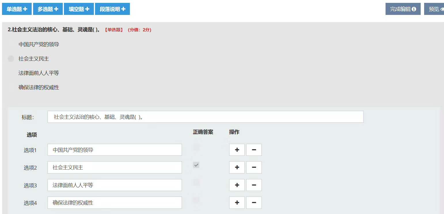 簡易性:支持批量導(dǎo)入各種類型文件題庫,支持固定試卷、抽題試卷和隨機(jī)試卷,自動生成統(tǒng)計報表。